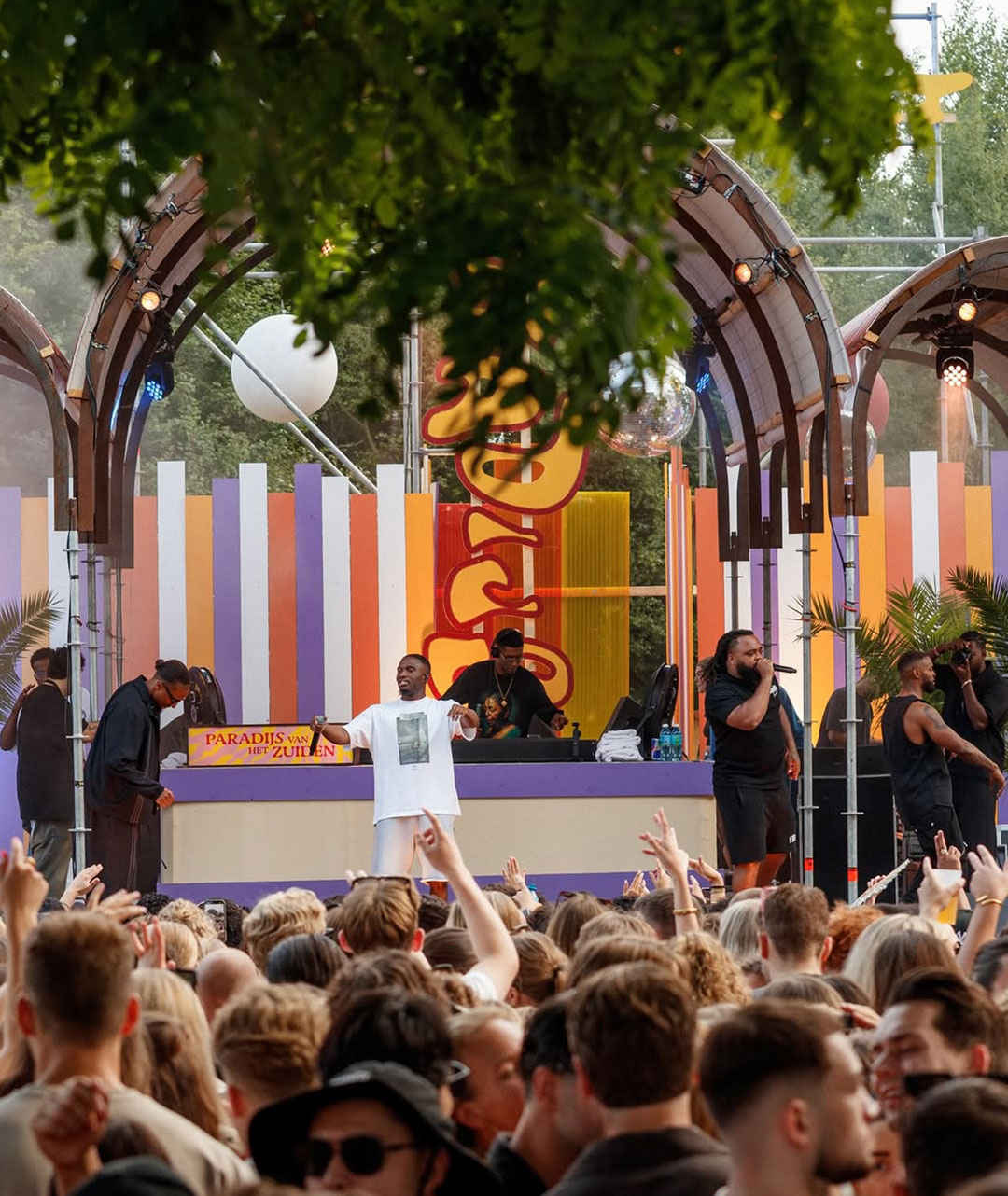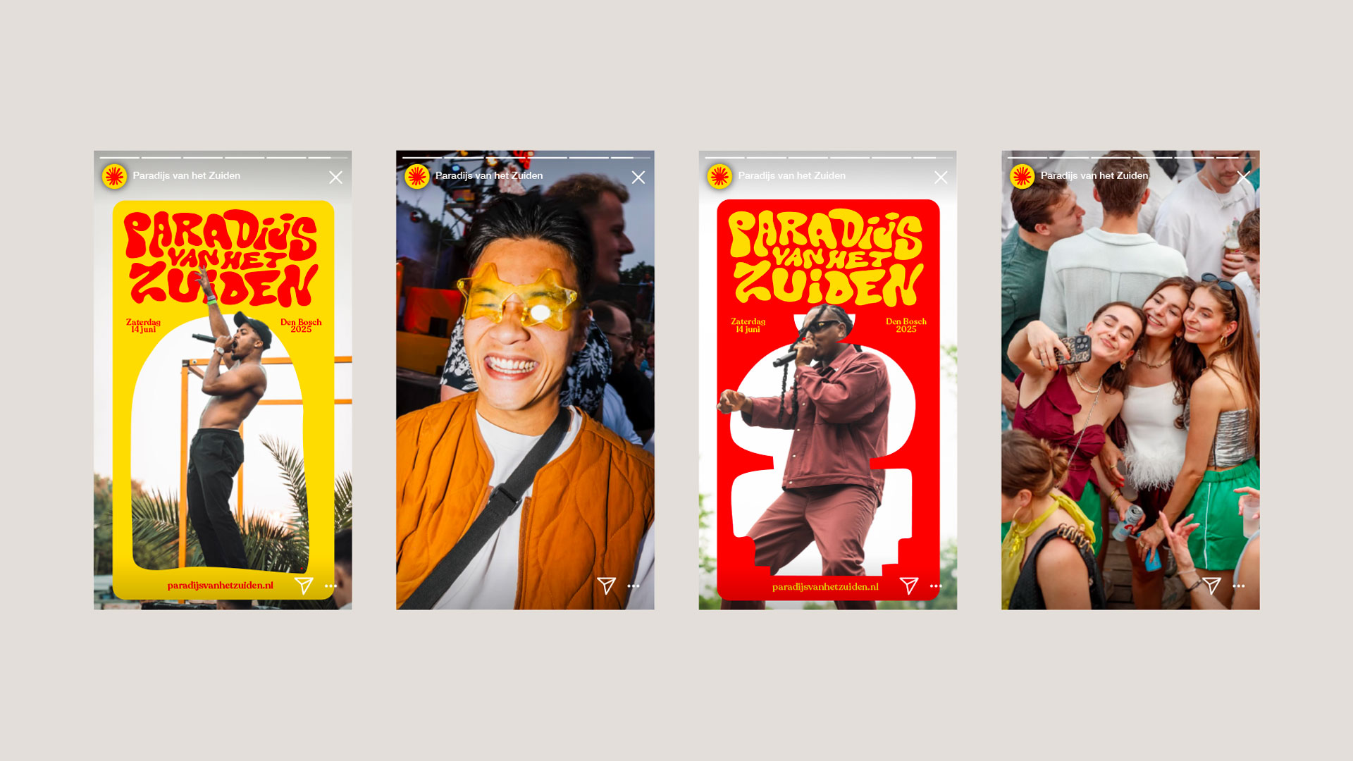 Het concept vormt daarop het antwoord: een visuele identiteit geïnspireerd door ornamenten en vormen van heilige, religieuze en spirituele doorgangen. Poorten, deuren en symbolische toegangspunten die al eeuwenlang verwijzen naar het paradijs — precies zoals de festivalnaam belooft. Elk element is een eigentijdse interpretatie daarvan, samengesteld tot unieke ‘doorgangen’ die verschillende muziekgenres en sferen vertegenwoordigen. Voor ieder een eigen route naar het paradijs.